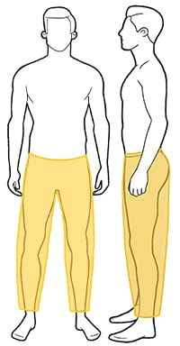 La persona che funge da modello è alta 178 cm e veste la taglia 50.